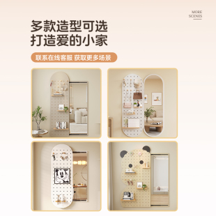 洞洞板穿衣镜入户玄关实木置物架定制免打孔配件墙面展示架挂衣架