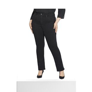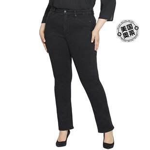 NYDJ 美国奥莱直发直筒裤 Plus 黑色 无缝星星靴型牛仔裤 自营