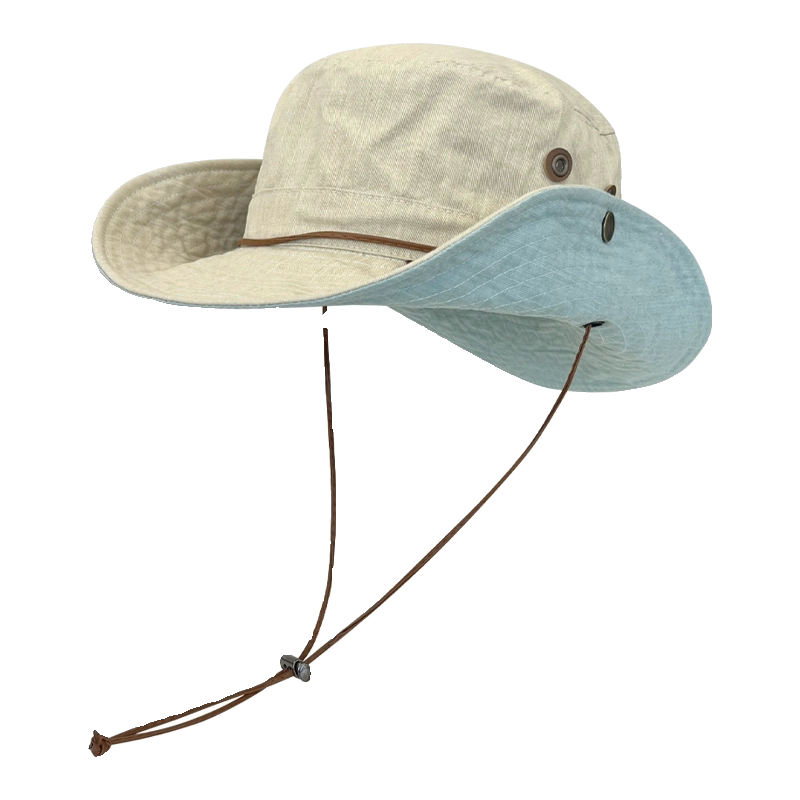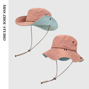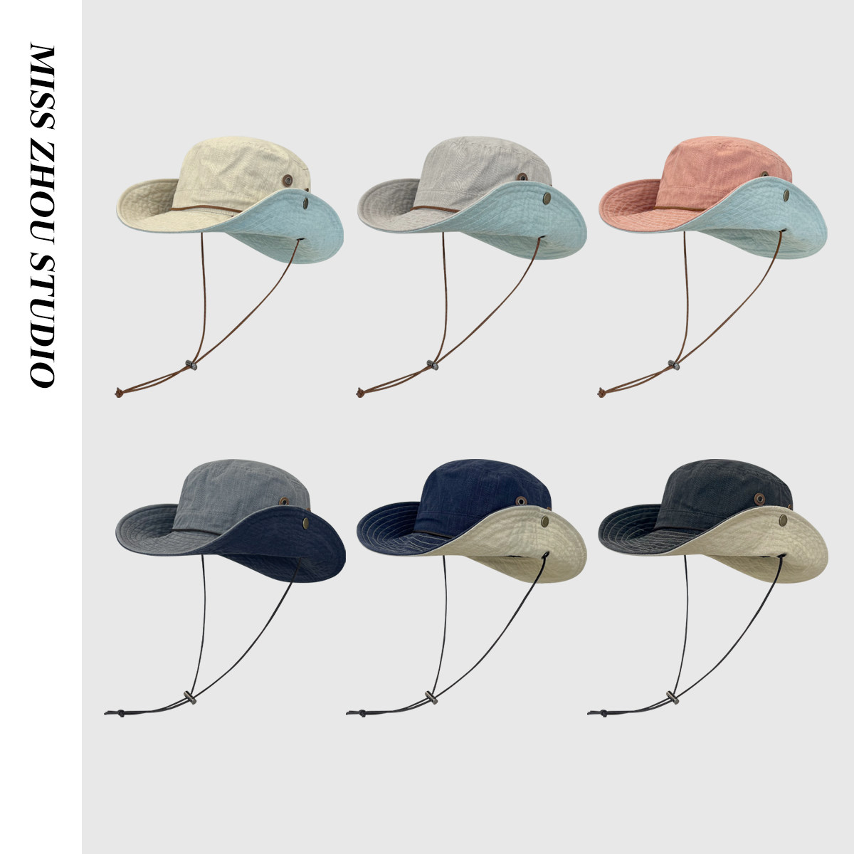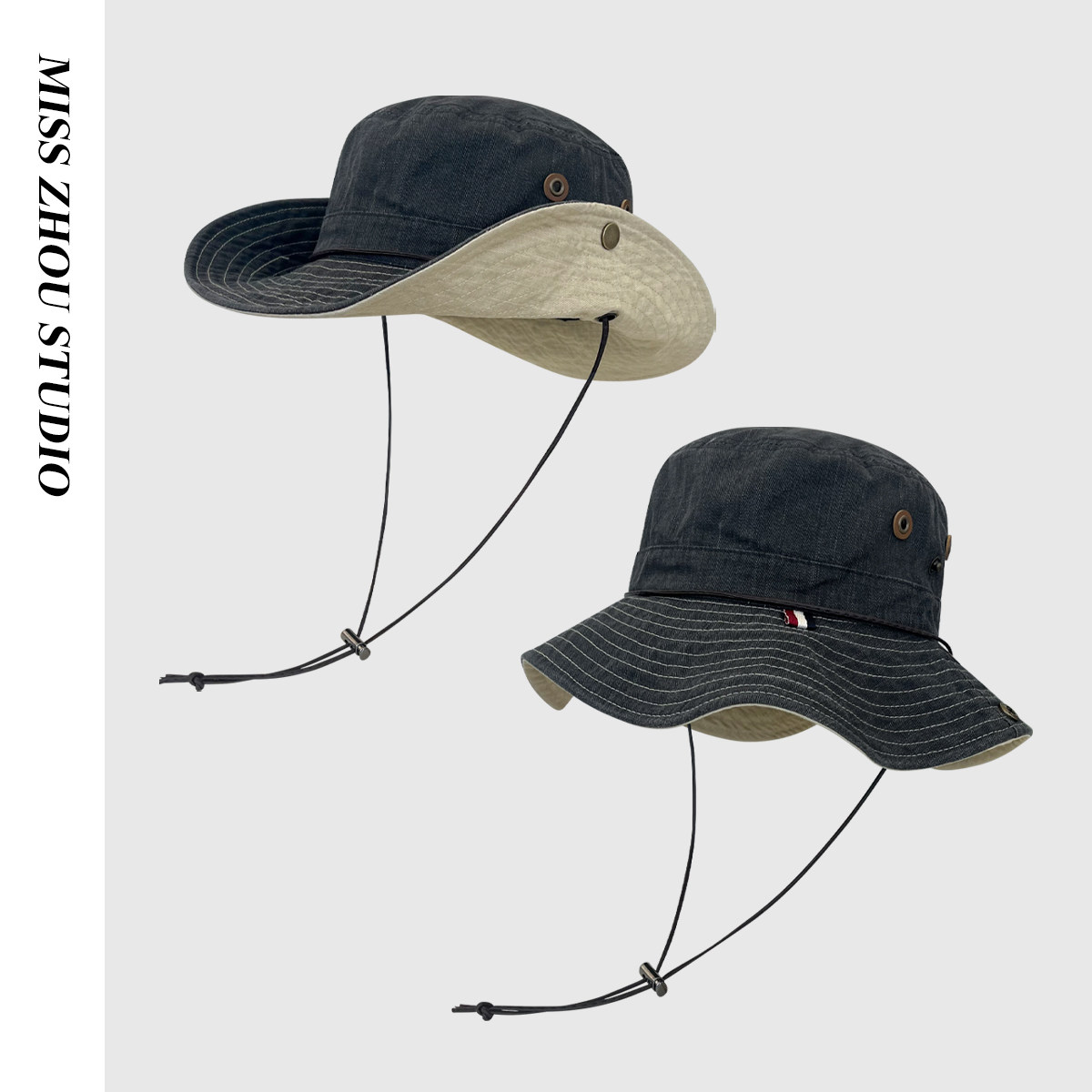 日系拼色牛仔渔夫帽子女夏季 复古百搭出游登山钓鱼防晒百搭盆帽潮