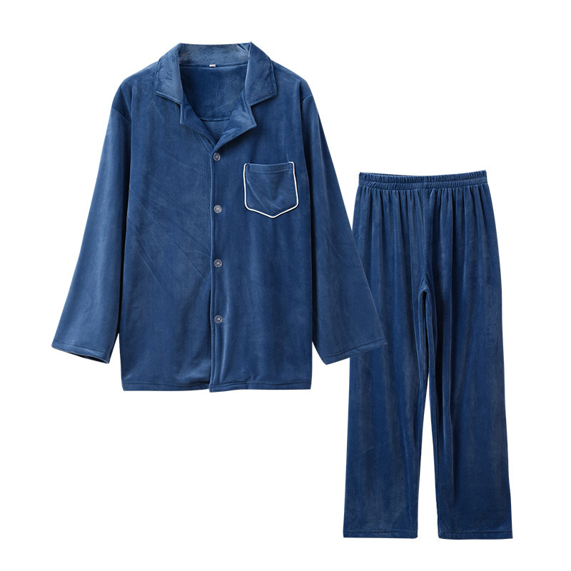 家居服简约时尚 保暖珊瑚绒秋冬季 两件套 长袖 加厚法兰绒睡衣男套装