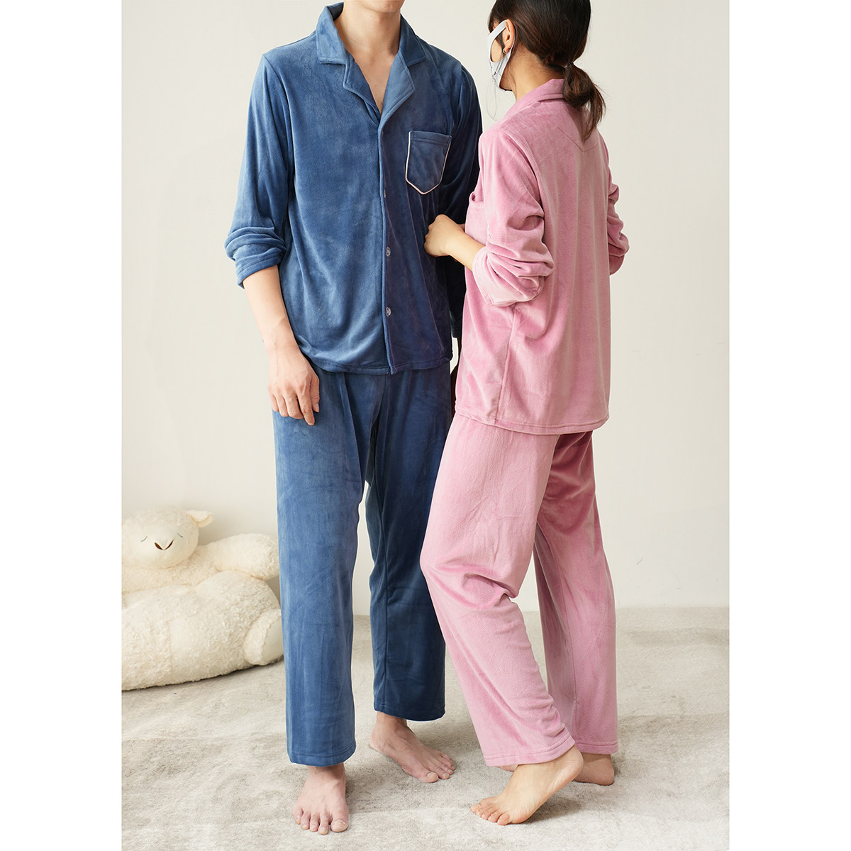 男家居服 加厚加绒法兰绒大码 芬腾珊瑚绒情侣睡衣女秋冬季 保暖套装