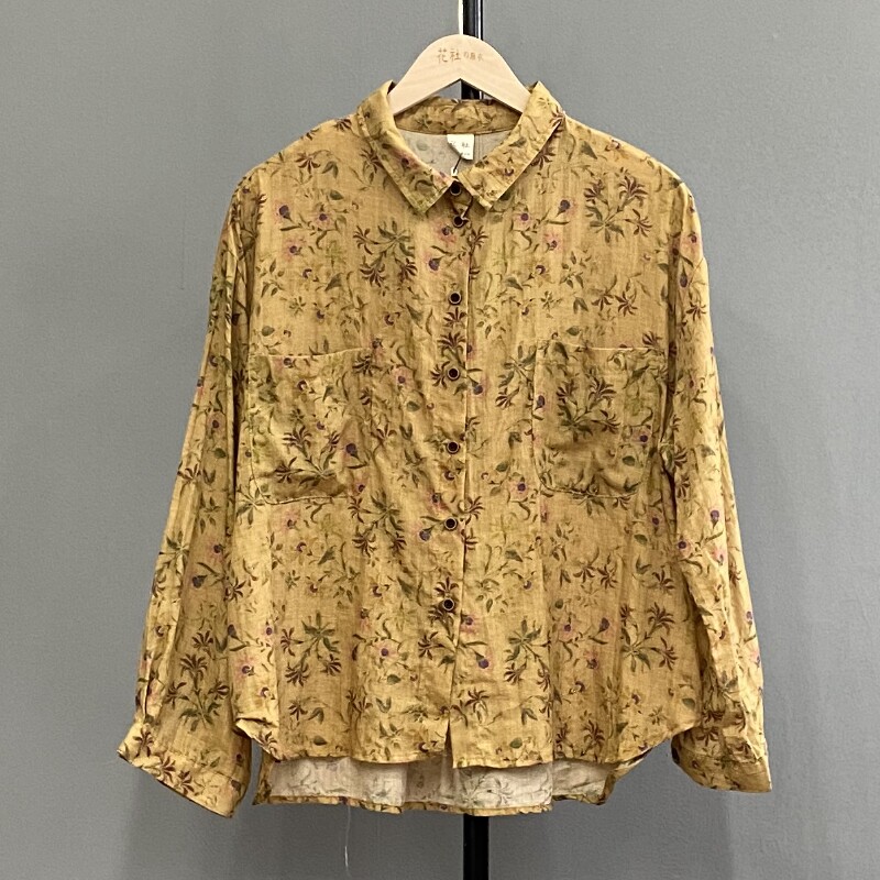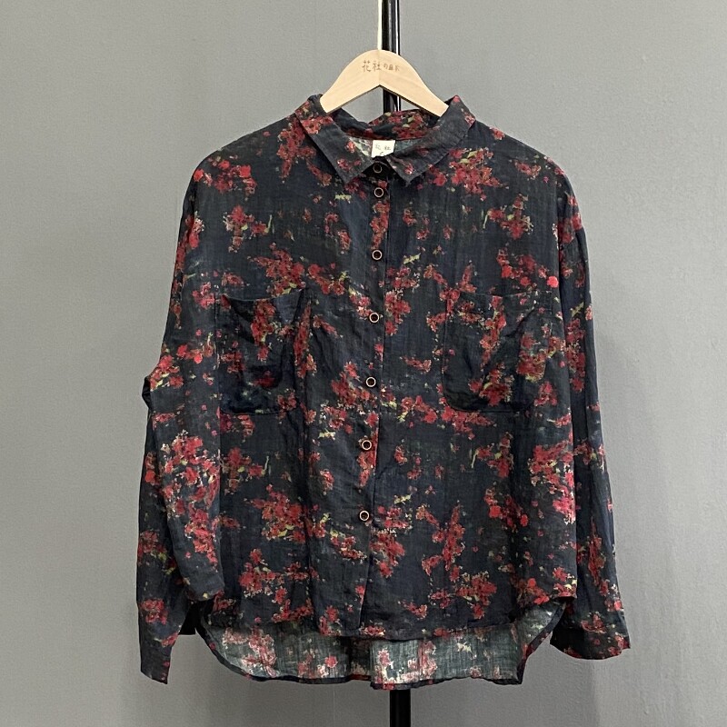 花色前短后长 花社 个性 5531亚麻衬衫 舒适透气防晒外套 日单