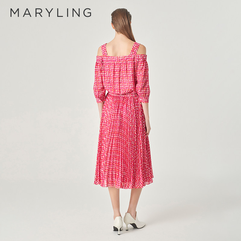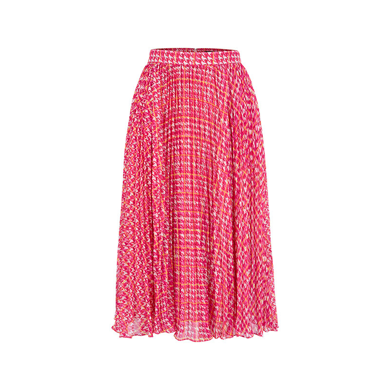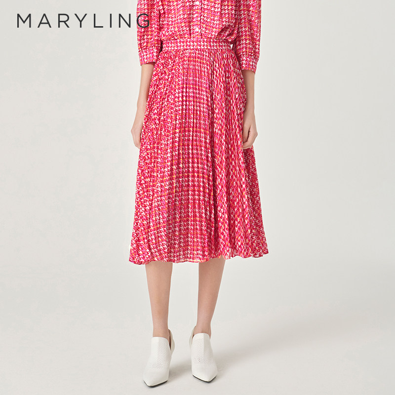 MARYLING玛俪琳春新品 粉色千鸟格印花太阳褶半身裙A1EBW72230