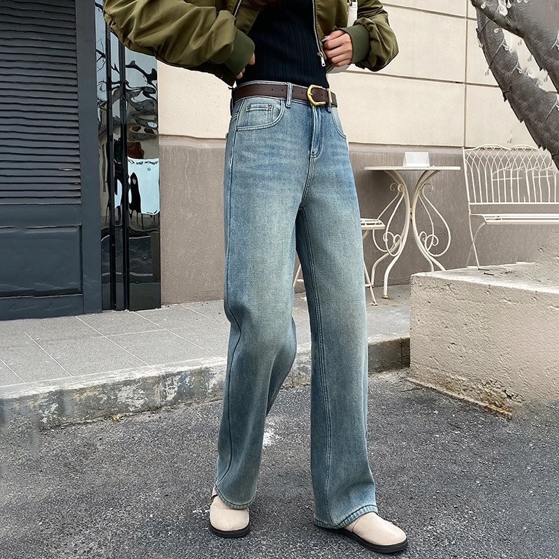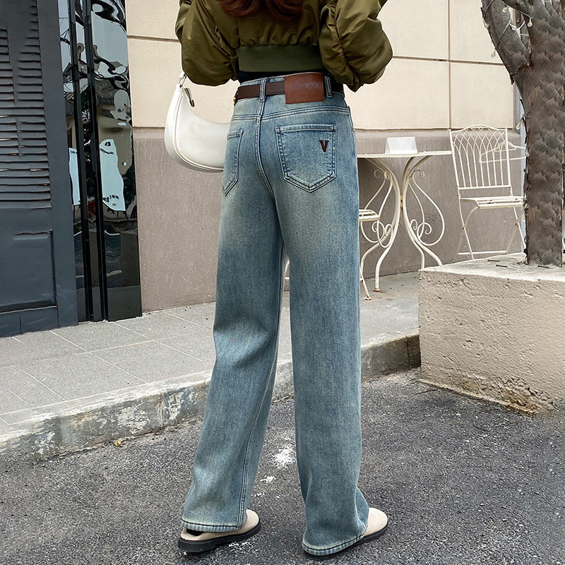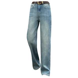 女牛仔直筒阔腿裤 2025秋新款 Jeans阿凡牛3189浅蓝V字宽松显瘦窄版