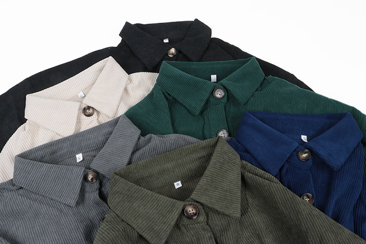 长袖 春秋男士 衬衫 加大码 宽松版 休闲纯色上衣男装 衬衣灯芯绒外套