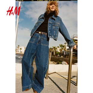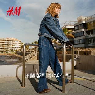 高腰直筒垂感阔腿宽松丹宁长裤 HM女装 新款 2025冬季 1261750 牛仔裤