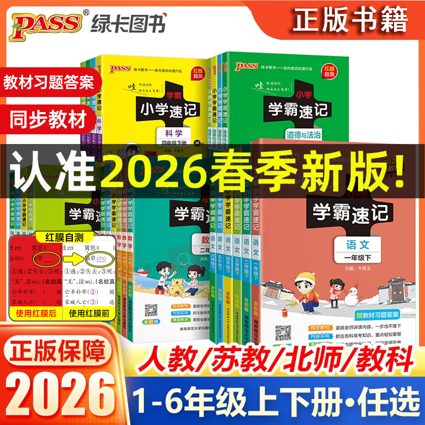 2026春小学学霸速记语文数学英语科学道法一二三四五六年级上下册