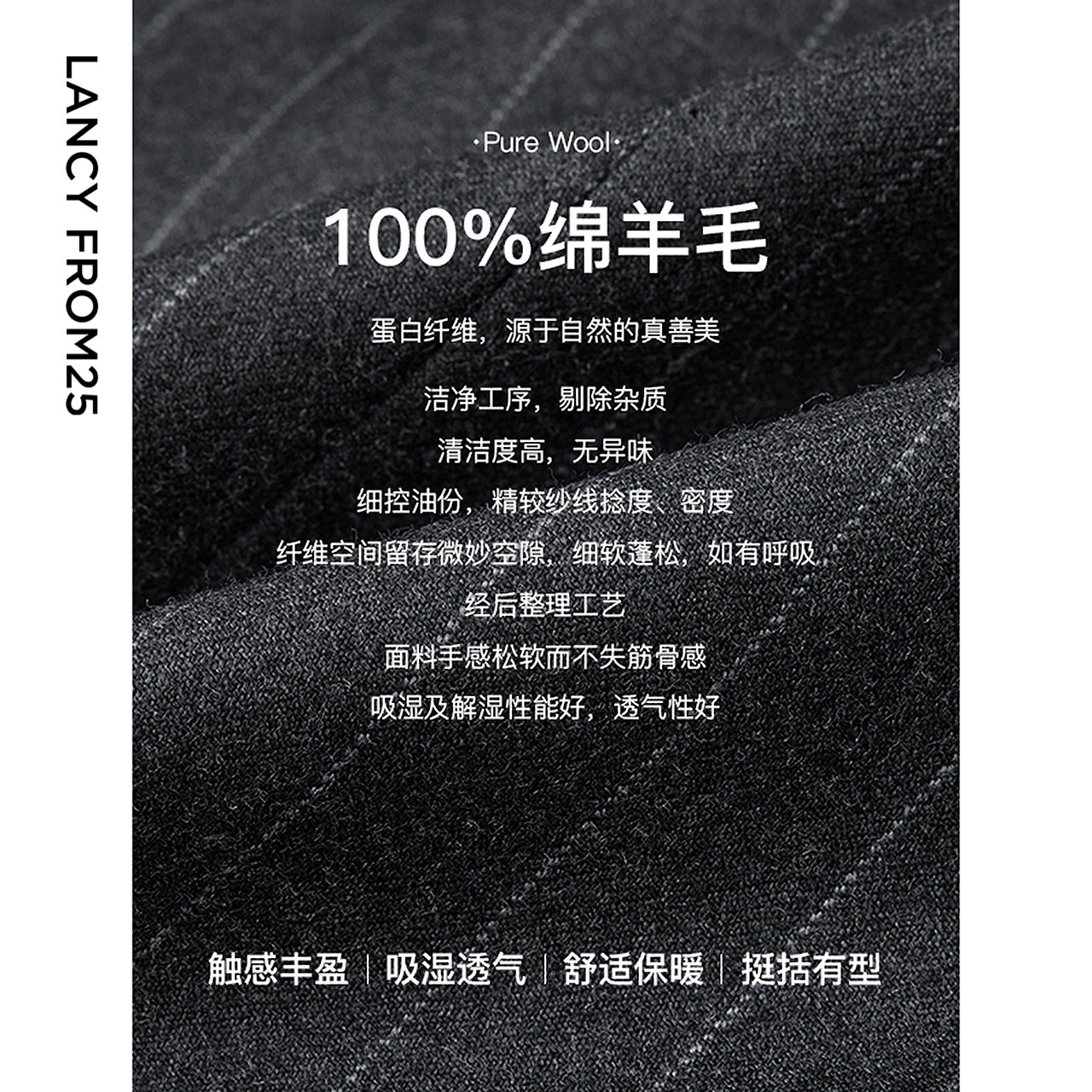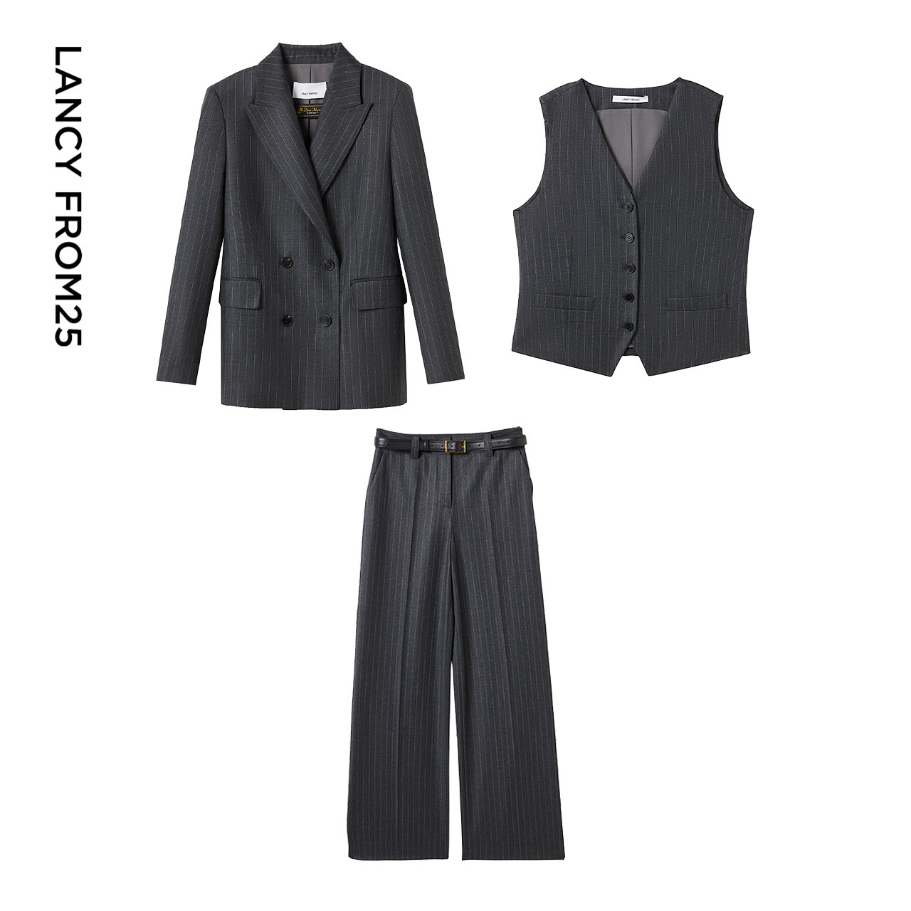 高级感西装 朗姿纯羊毛灰色条纹西服 2025春新款 马甲气质正装 西裤