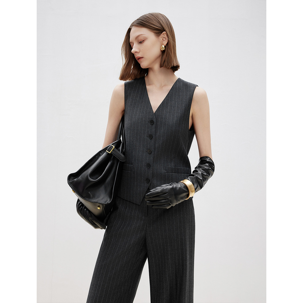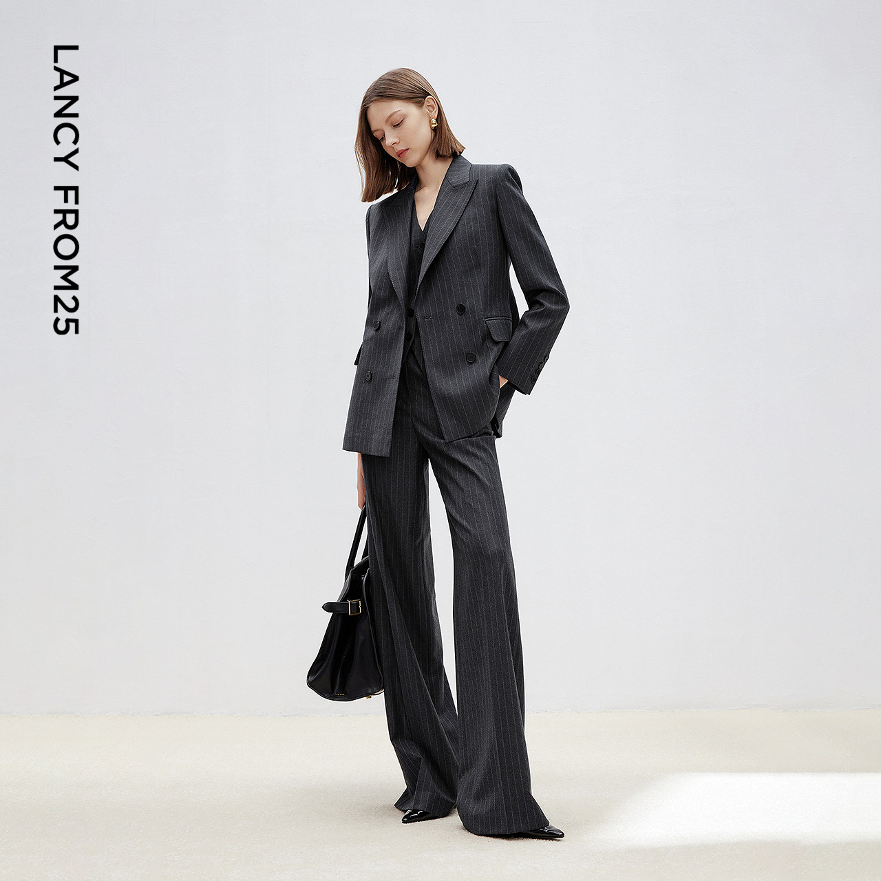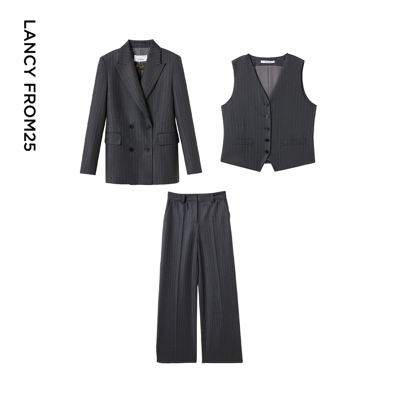 马甲通勤春新款 西裤 朗姿25纯羊毛条纹西服 西装 海马体合作款