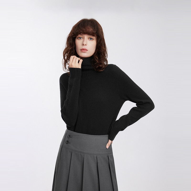 新款 ELLE高领毛衣女2024冬季 100%绵羊毛 软糯毛针织衫 自营