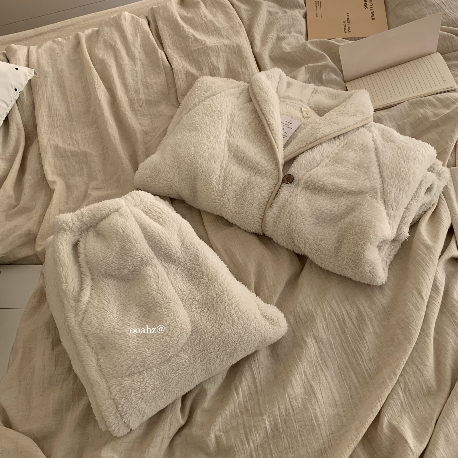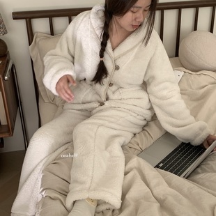 秋冬季 情侣珊瑚绒睡衣睡裤 加厚宽松法兰绒家居服套装 幸福demo