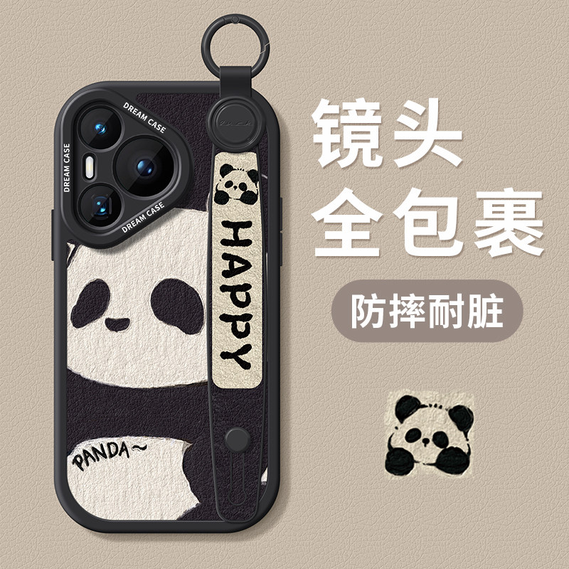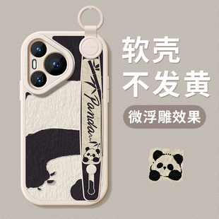 20卡通熊猫pro高级软壳 p30 适用华为pura80手机壳新款 p70ultra硅胶挂绳60art腕带支架p40pro防摔全包p50e女款