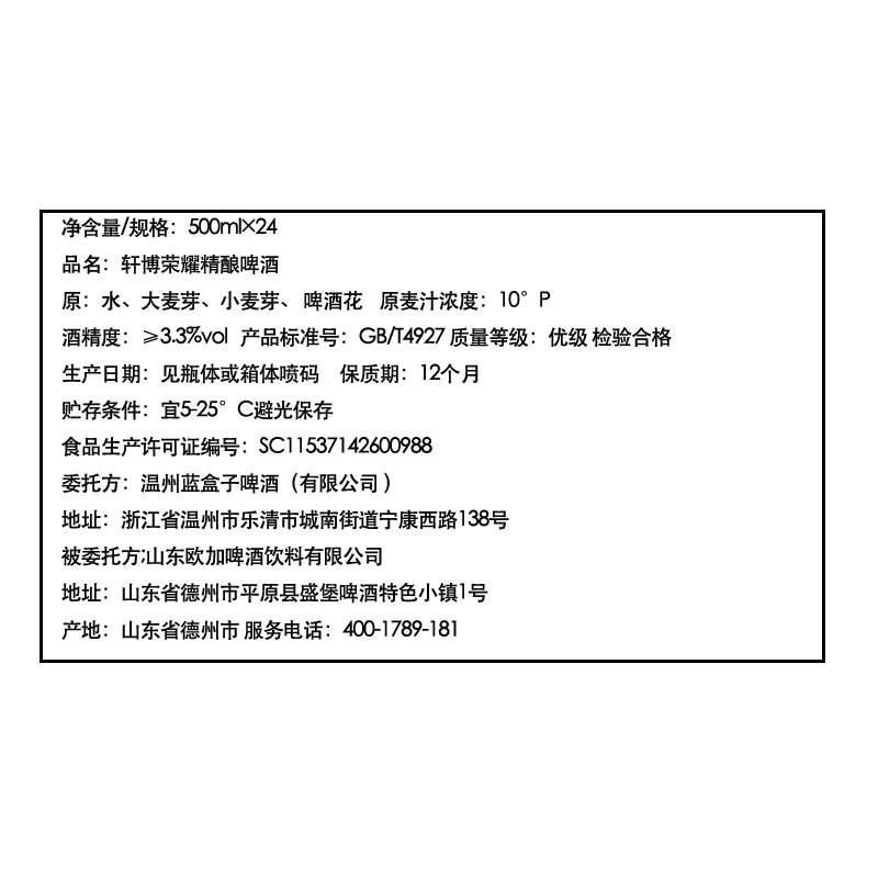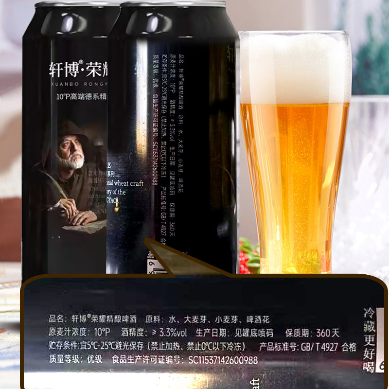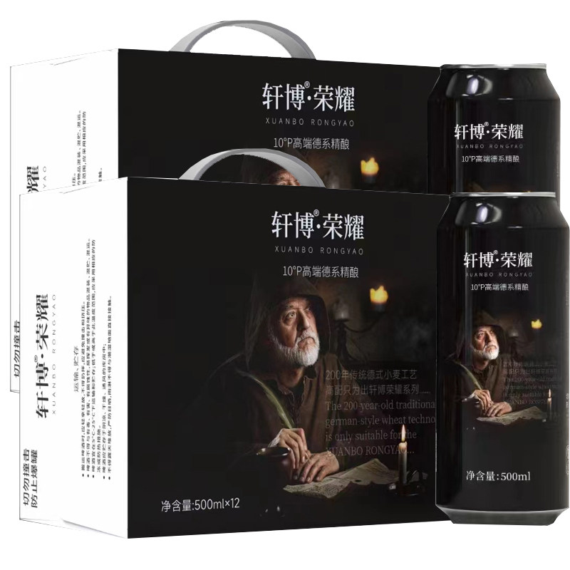 轩博荣耀精酿啤酒500ml 小麦白啤醇厚整箱聚会年货 24罐原浆德式