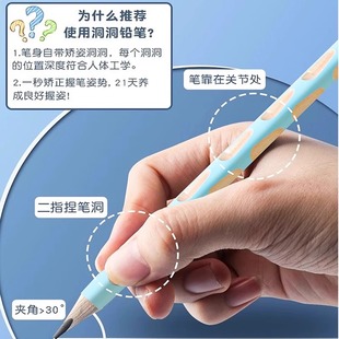 得力定制刻字洞洞铅笔小学生专用安全一年级2b加粗洞洞笔HB桶装 儿童矫正握姿幼儿园专用初学者无毒铅三角杆