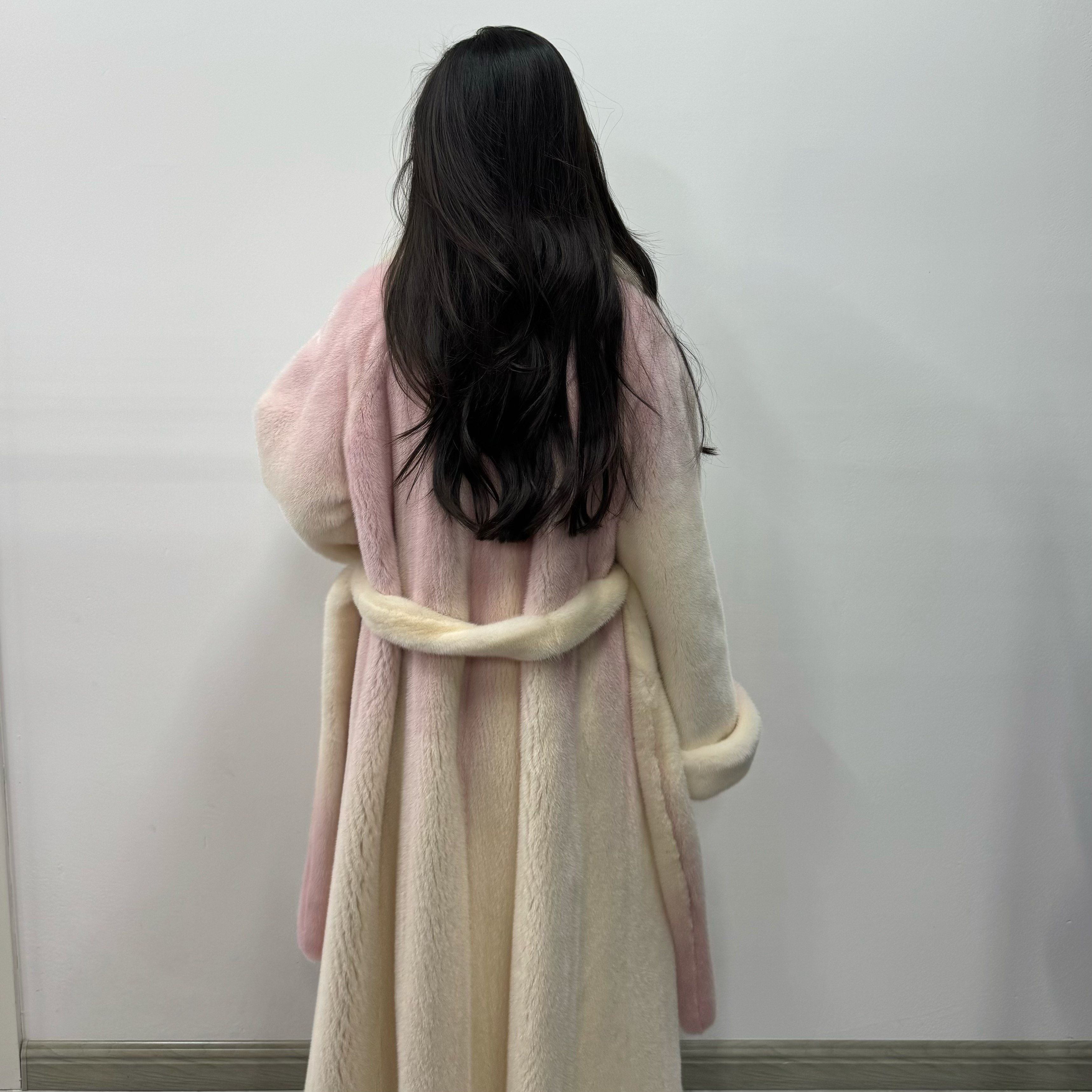 雪山晕染仿獭兔毛毛双色渐变渲染高级感宽松外套女短款 厚 立领冬季
