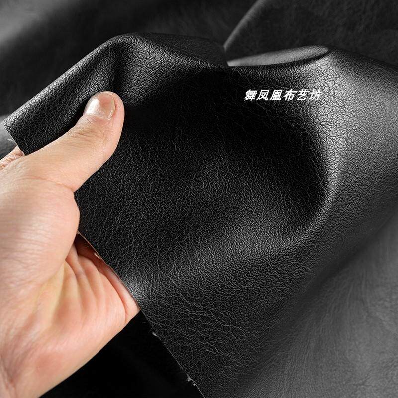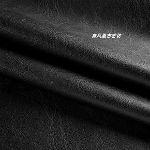 布料 服装 哑光黑色PU皮革 轻肌理裂纹柔软丝滑防水皮夹克皮裙皮裤