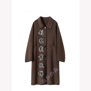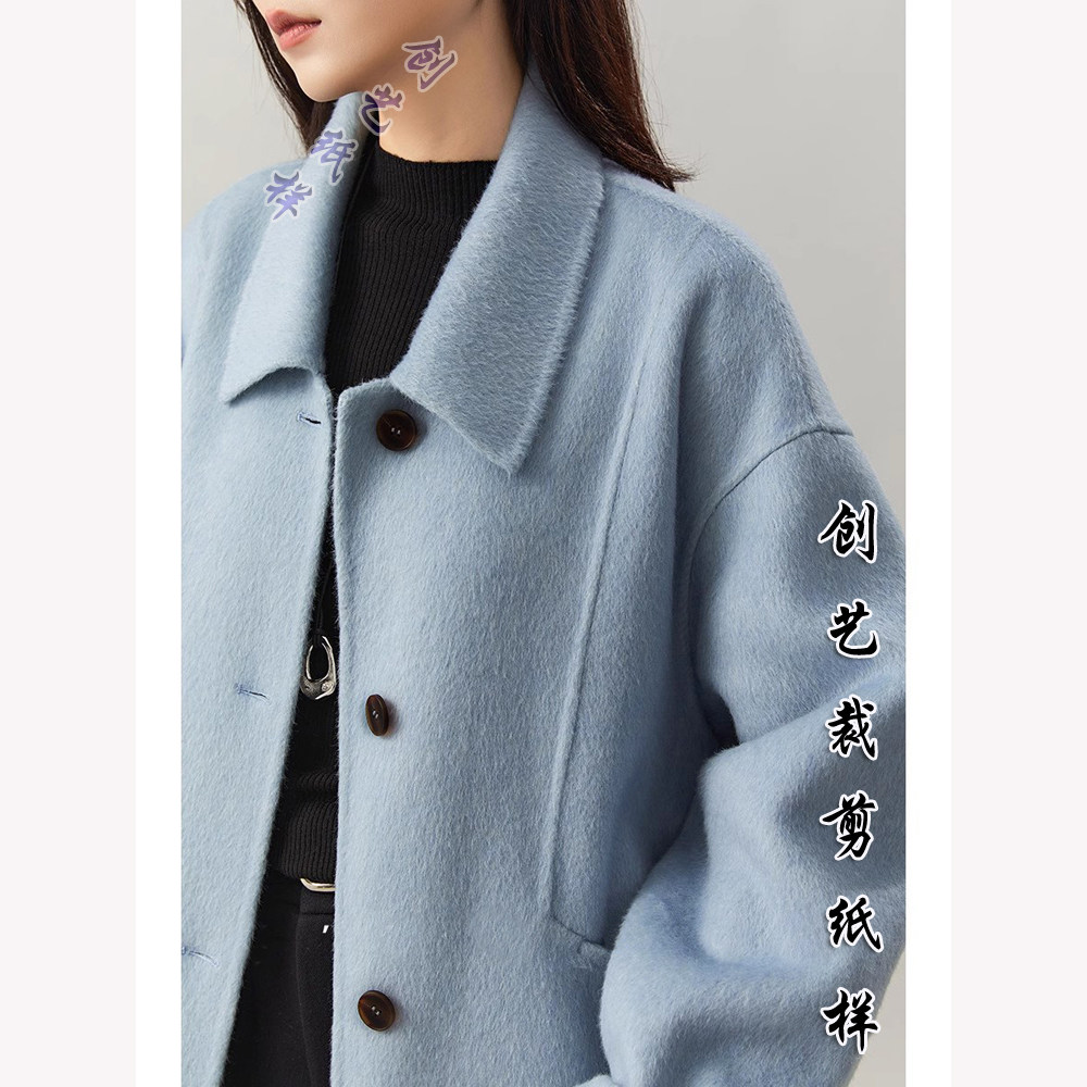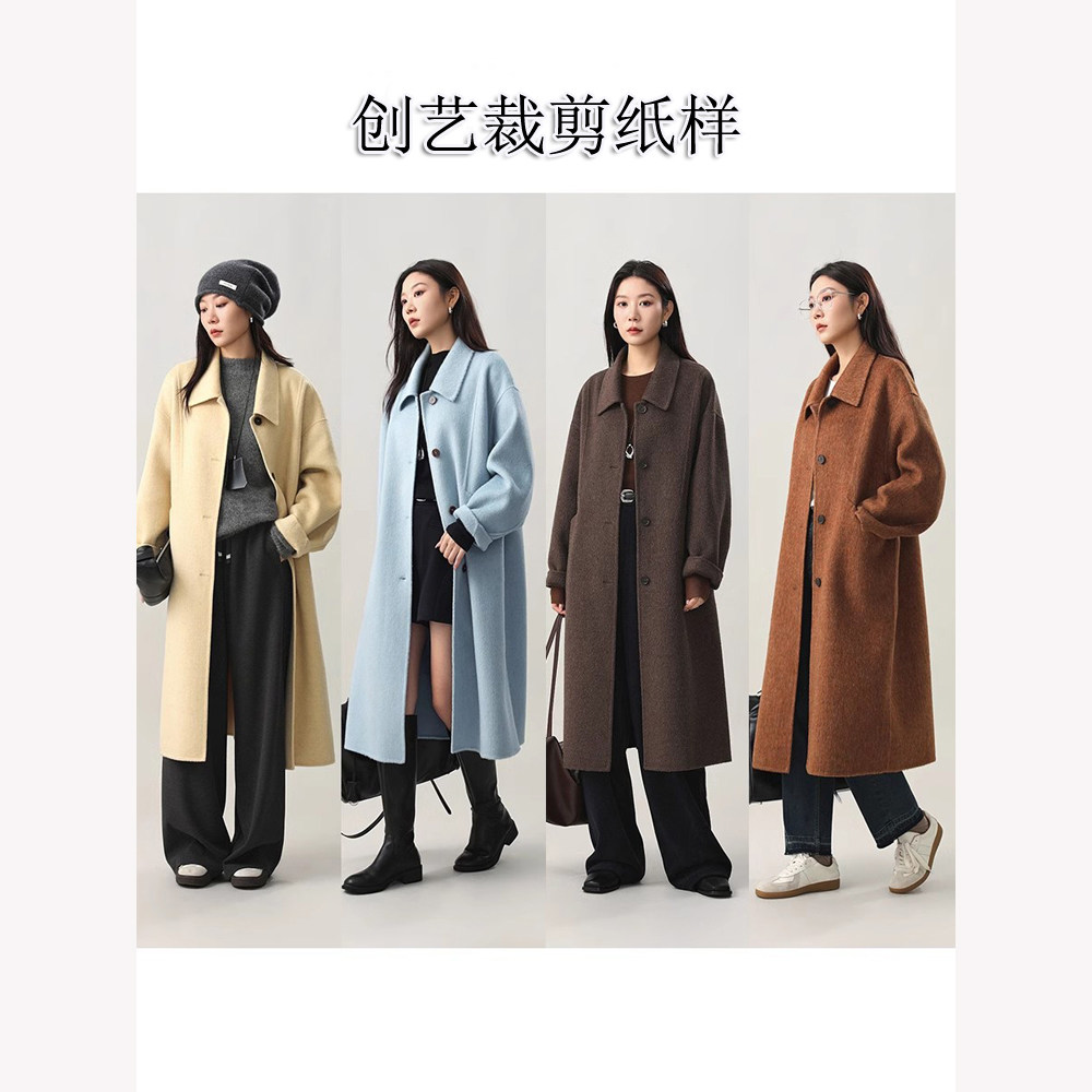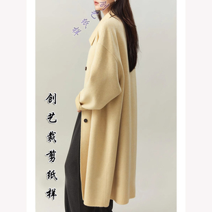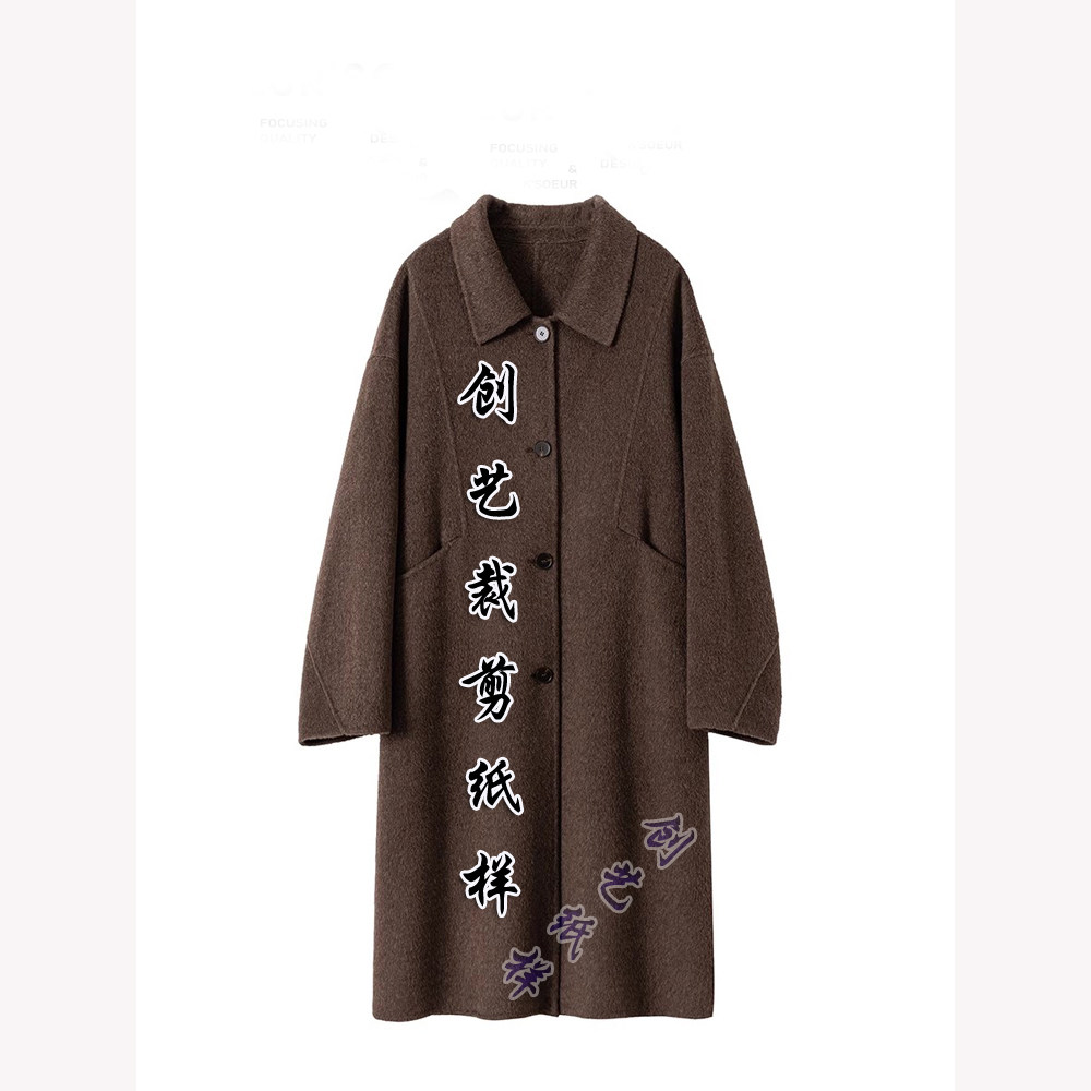 裁剪纸样 女新款 缝纫做衣服E347骆驼绒双面呢羊驼混纺大衣长款 冬装