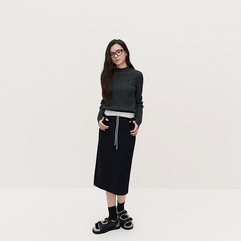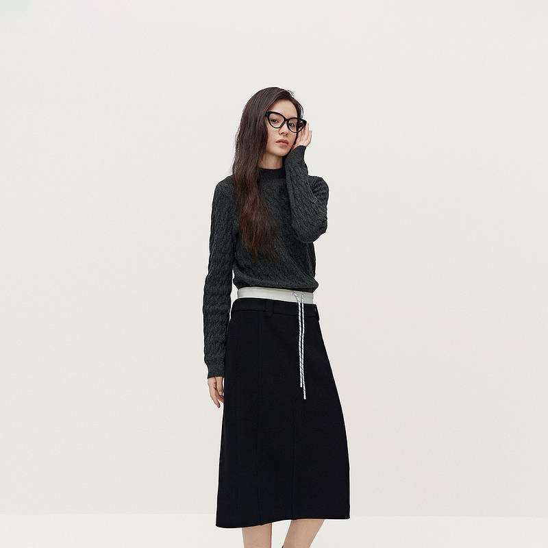 ochirly欧时力 澳大利亚100%美丽诺羊毛半高领毛衣女2024秋冬新品