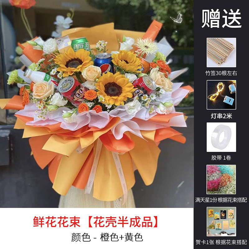 零食花束半成品包装 diy材料全套节生日鲜花零食香烟创意礼物花壳