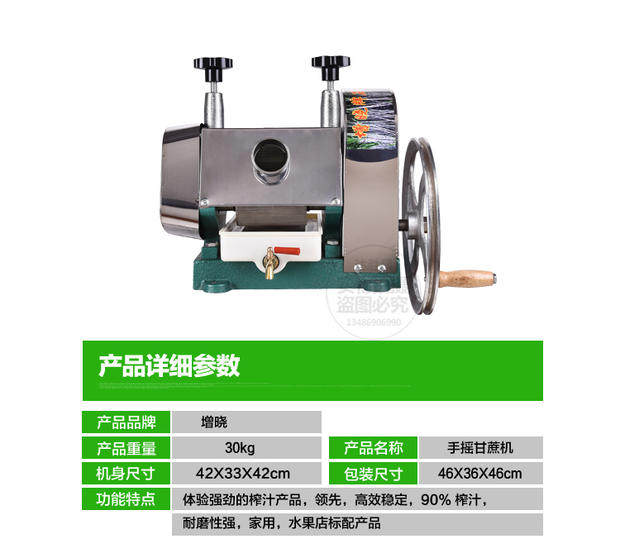 厂家直销 压榨机不锈钢甘蔗机 增晓牌 甘蔗榨汁机 手摇甘蔗榨汁机