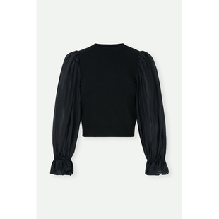 Olivia Alice 棉质真丝混纺欧亘纱拼接混纺上衣 折扣