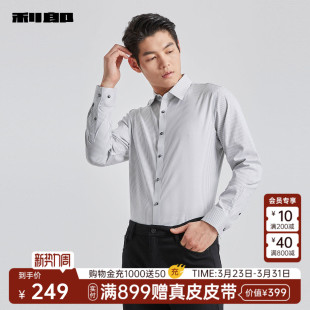 衬衫 利郎官方长袖 男士 商务2025春翻领男装 衬衣男 正装 肌理条纹