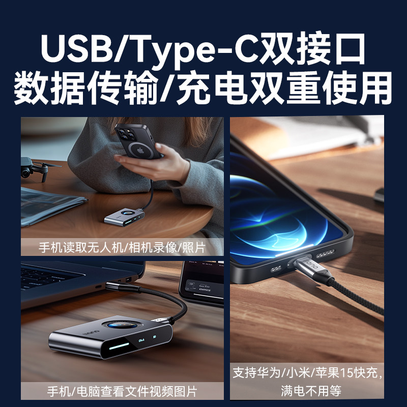 能适usb2.0高速读卡器佳能适用于苹果iphone15手机单反相机读取器tf卡sd卡多合一读卡器通用转接typec电脑U盘