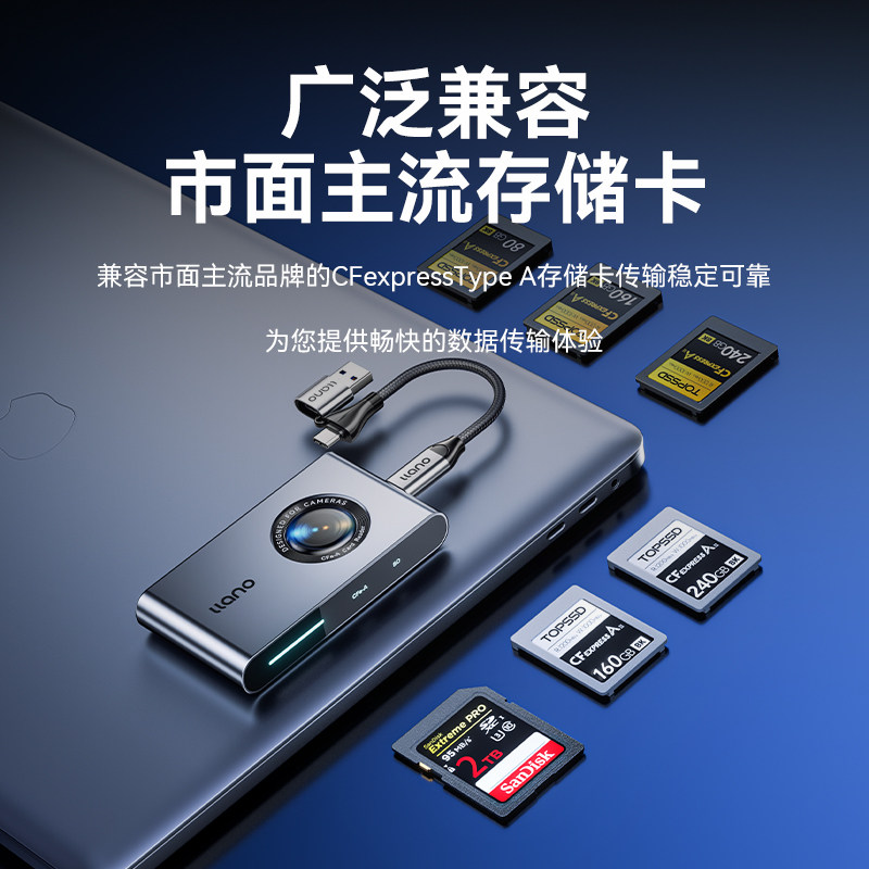 绿巨能cfa读卡器CF SD卡双卡同读CFexpress索尼相机内存卡USB3.2高速连接Typec手机适用苹果iphone16电脑平板