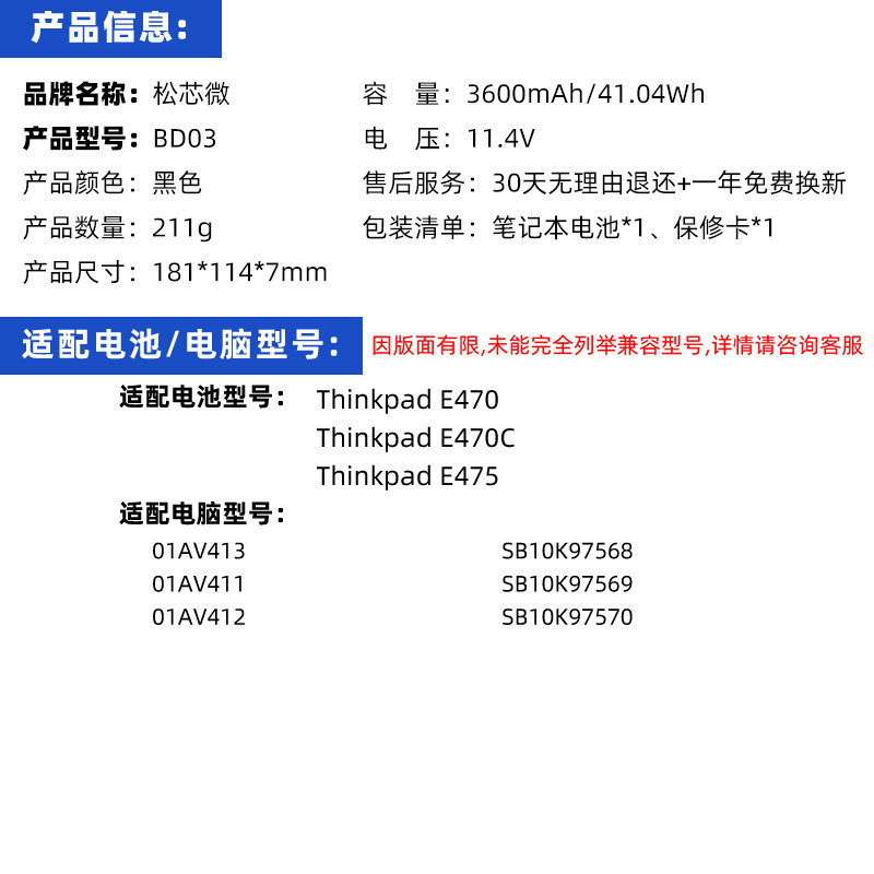 E470 01AV411 E470C 01AV413 01AV412笔记本电脑电池 E475 适用于联想Thinkpad