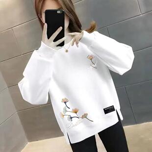 装 减龄印花时尚 显瘦宽松百搭上衣潮 保暖衫 加绒加厚卫衣女春秋冬季