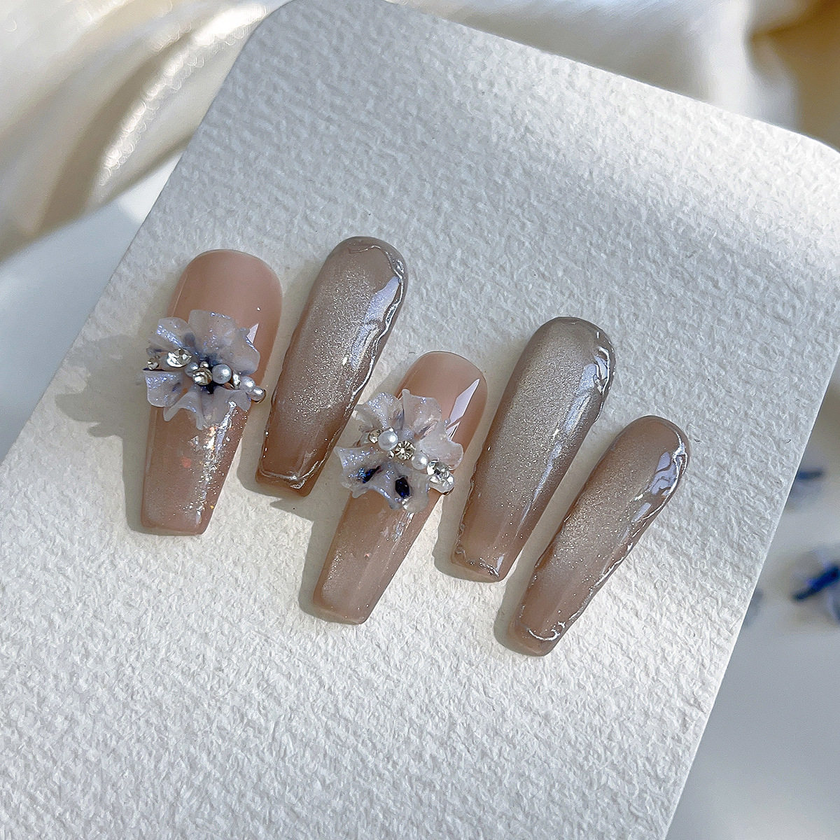 网红款 饰品 青花瓷荷花美甲饰品小清新渐变色树脂精致穿戴甲装
