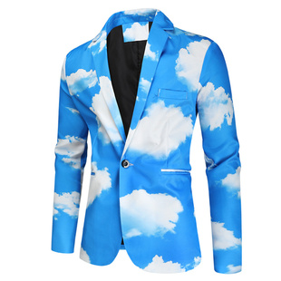 高级感黑色满天星西装 流行链条小西服上衣 外套男垫肩帅气百搭韩版