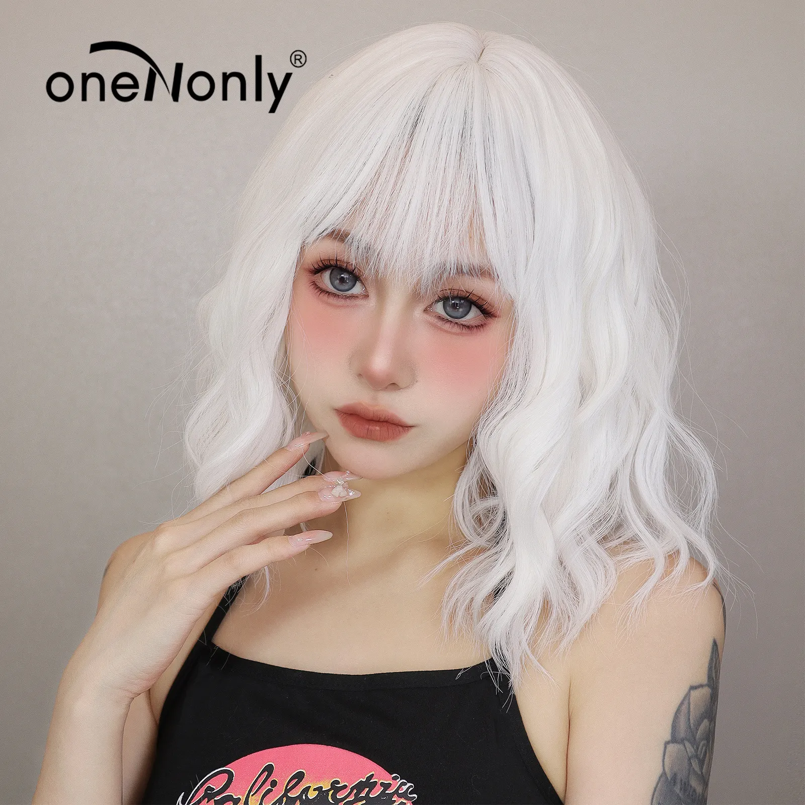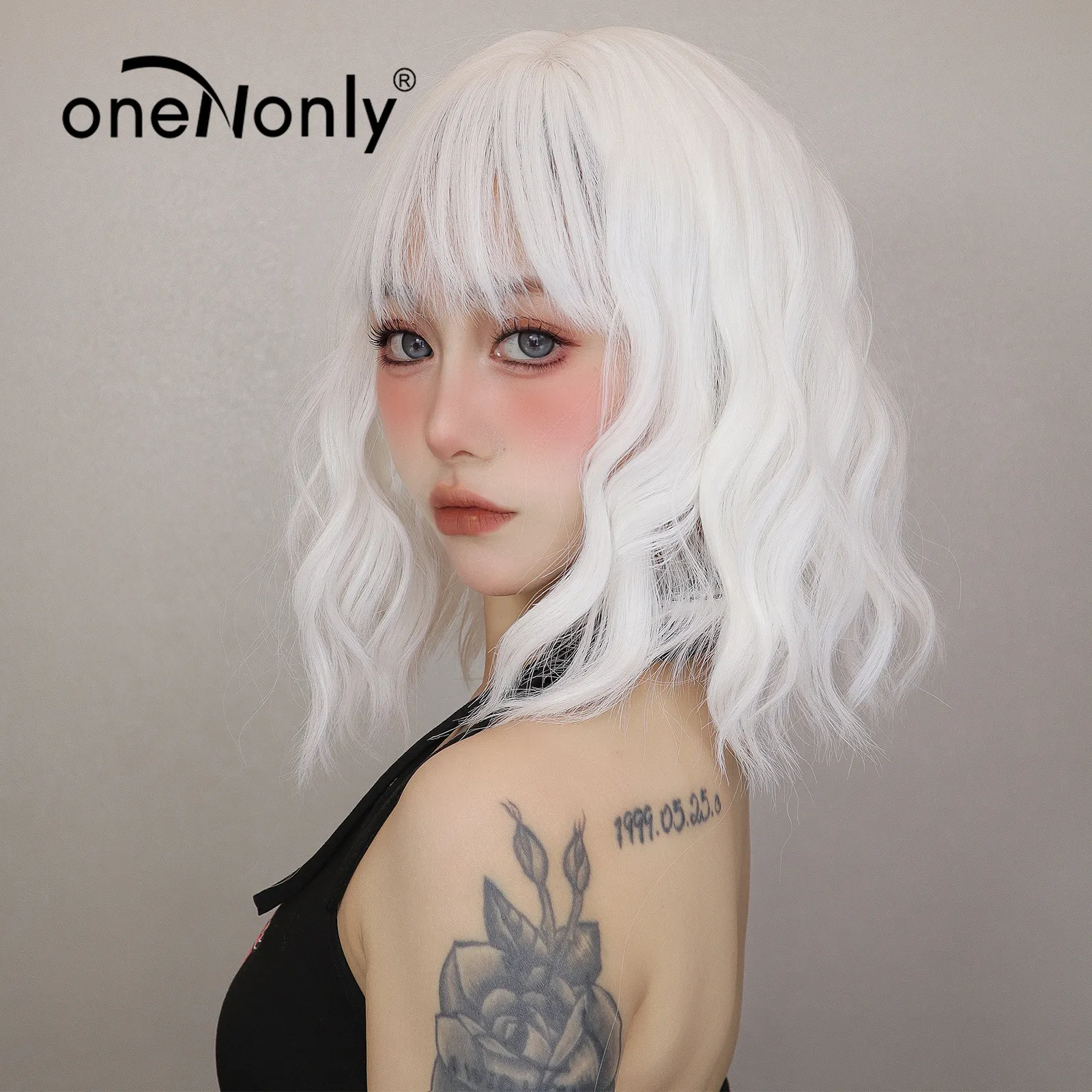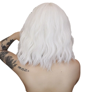 欧美热销现货 蓬松自然齐刘海白色短卷假发全头套 跨境新品 假发女