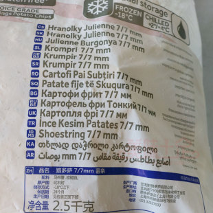 冷冻油炸薯条半成品 5斤细薯条路多萨薯条2.5kg冷冻零食炸土豆条