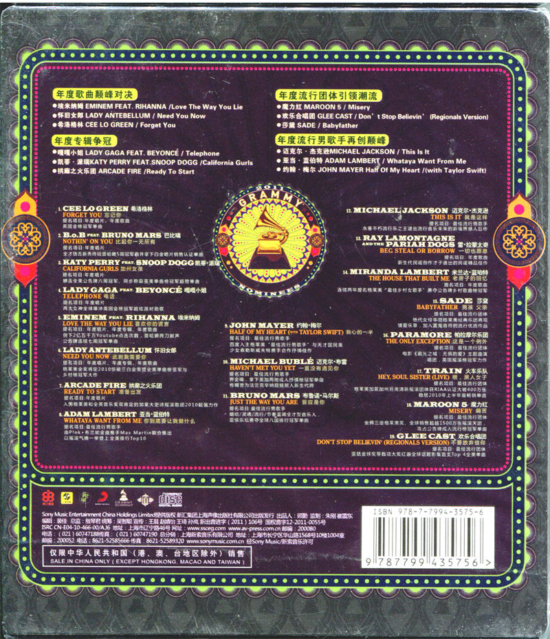 正版 喝彩 2011格莱美 19首格莱美金曲全收录 音乐