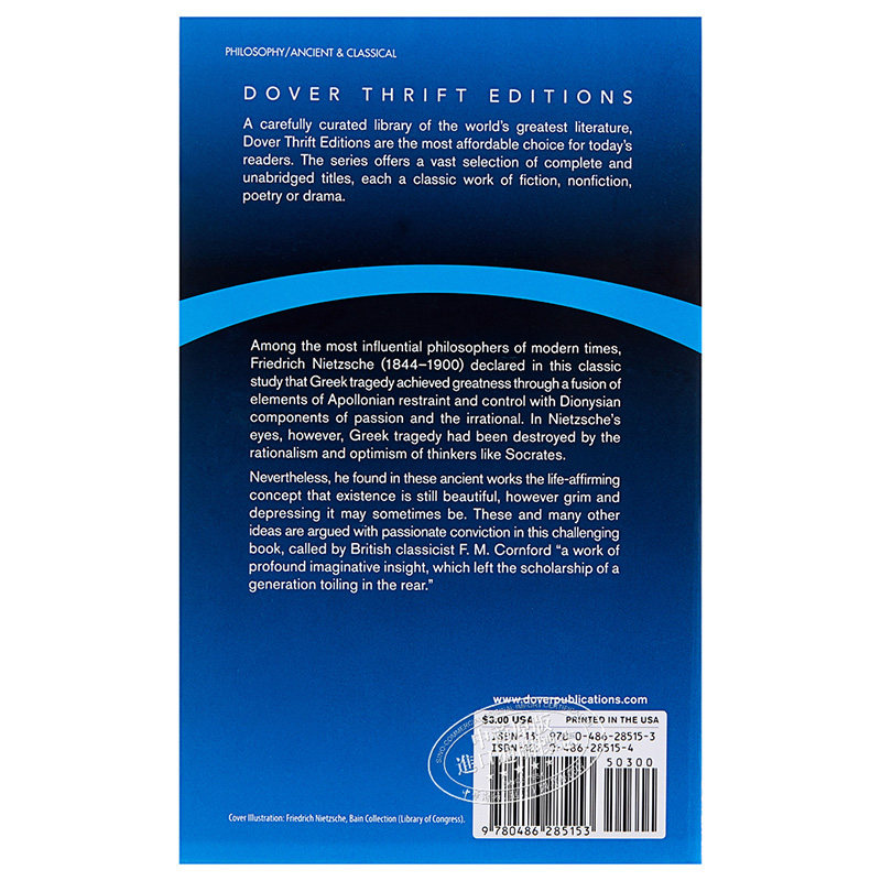 Tragedy Nietzsche 英文原版 Friedrich 诞生 悲剧 Birth The 中商原版