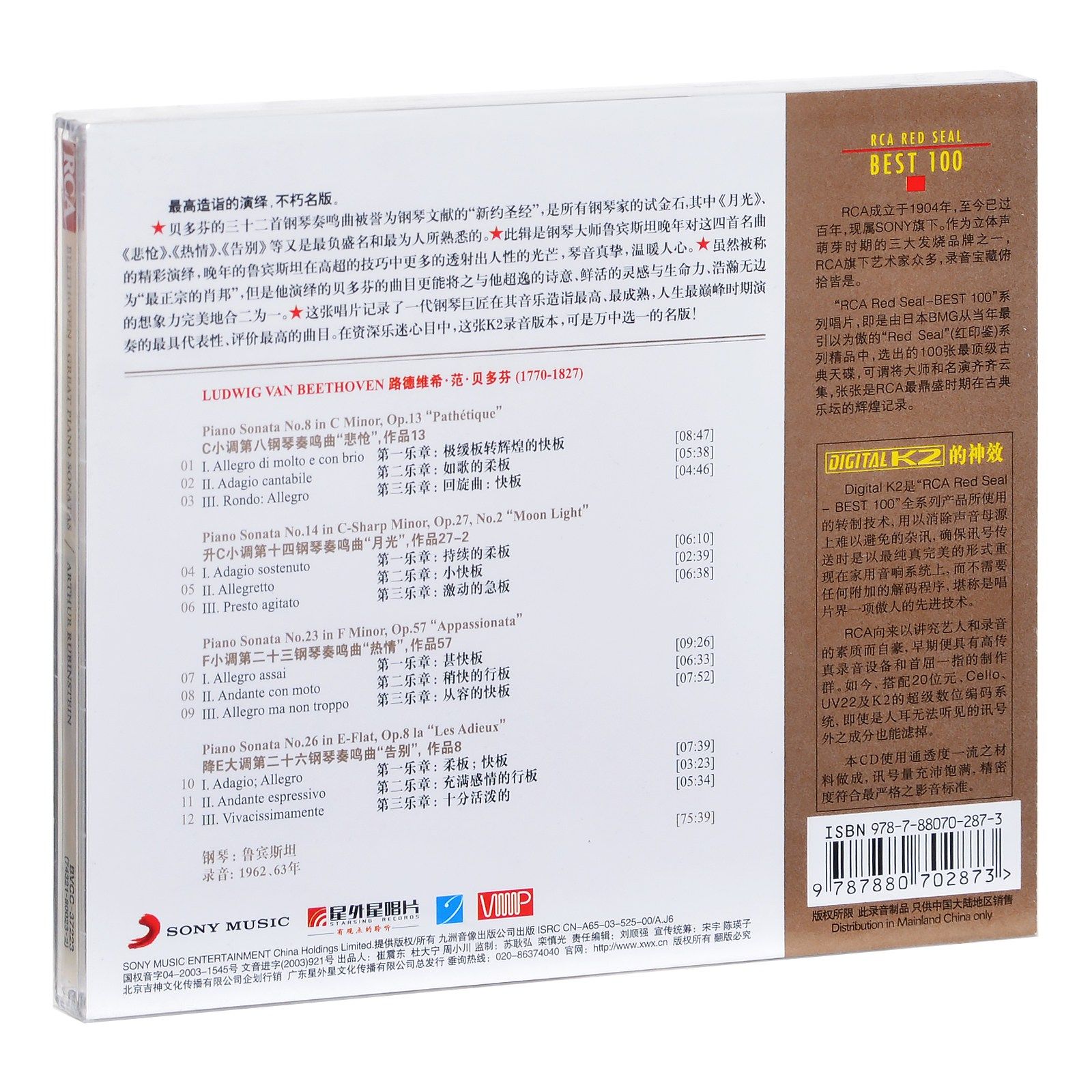 023 BEST100 贝多芬 悲怆月光热情 正版 钢琴奏鸣曲 RCA红印鉴