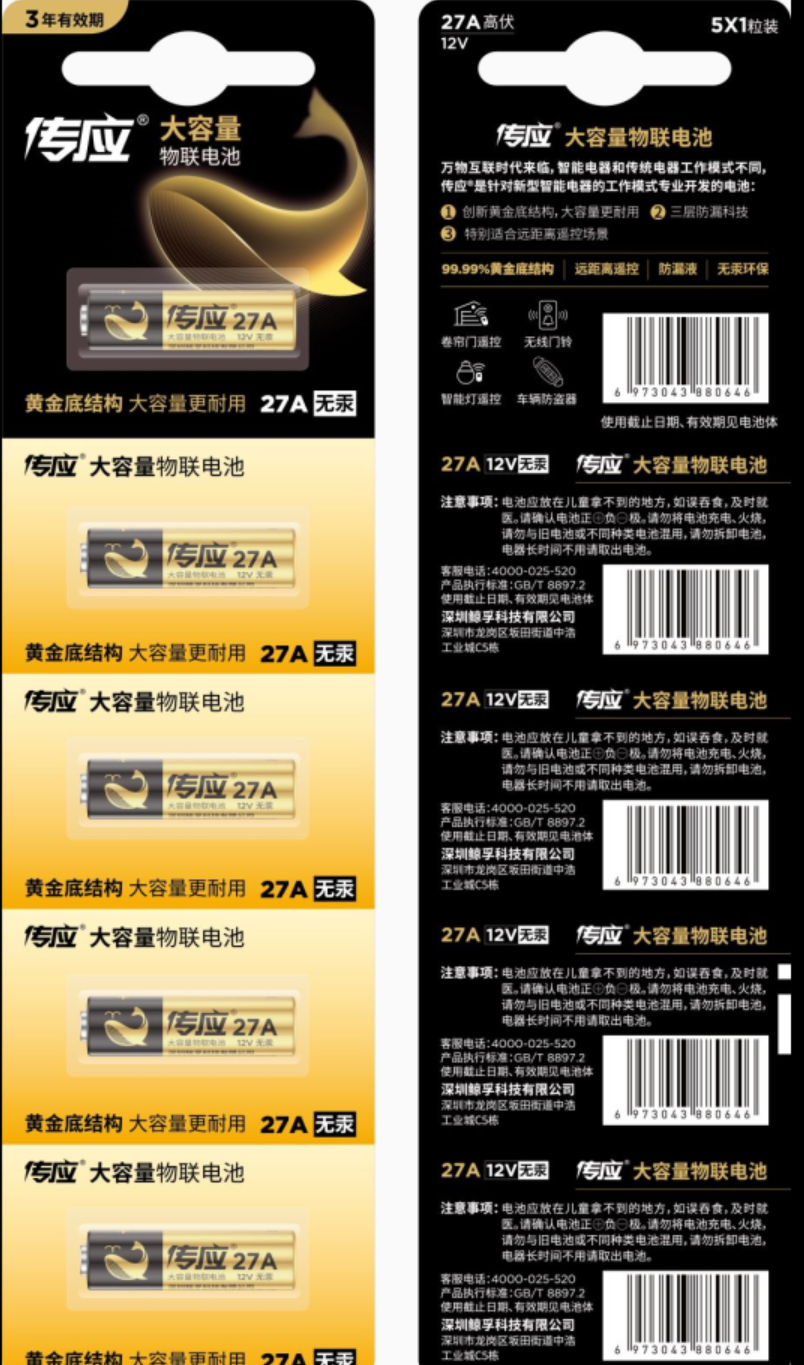 南孚传应12V27A电池碱性L828电池门铃卷帘门汽车遥控器干电池 车库门遥控器27a电池