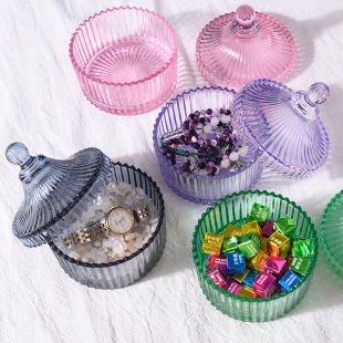 复古玻璃厚实糖罐咖啡糖缸首饰收纳盒化妆棉签干糖家用带盖糖果盅