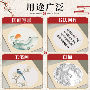 加厚国画生宣宣纸卡纸熟宣工笔画空白半生熟书法专用纸初学者儿童水彩画毛笔字练习用纸圆形镜片扇面作品纸