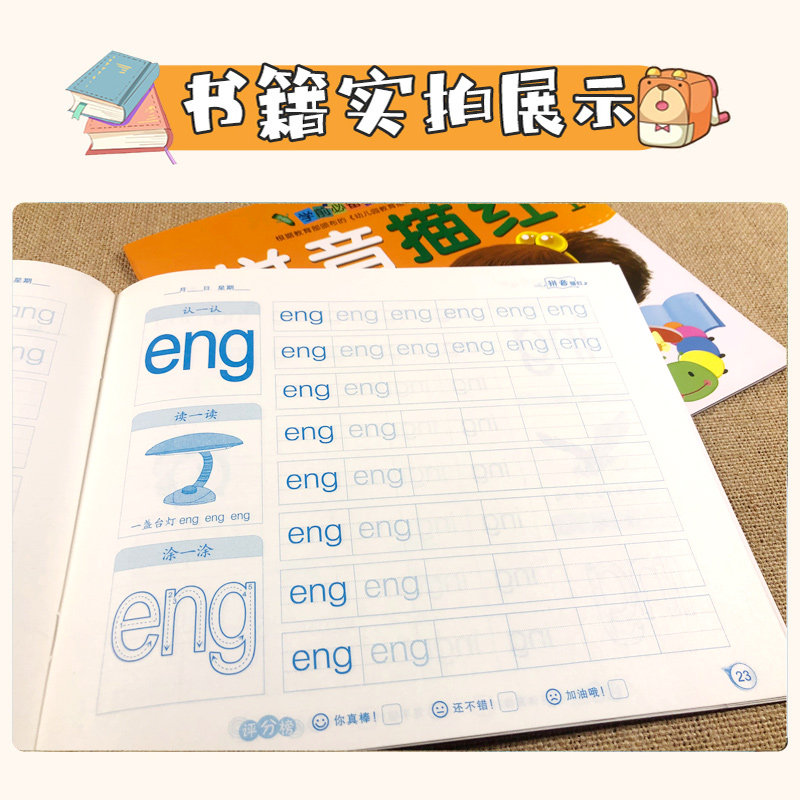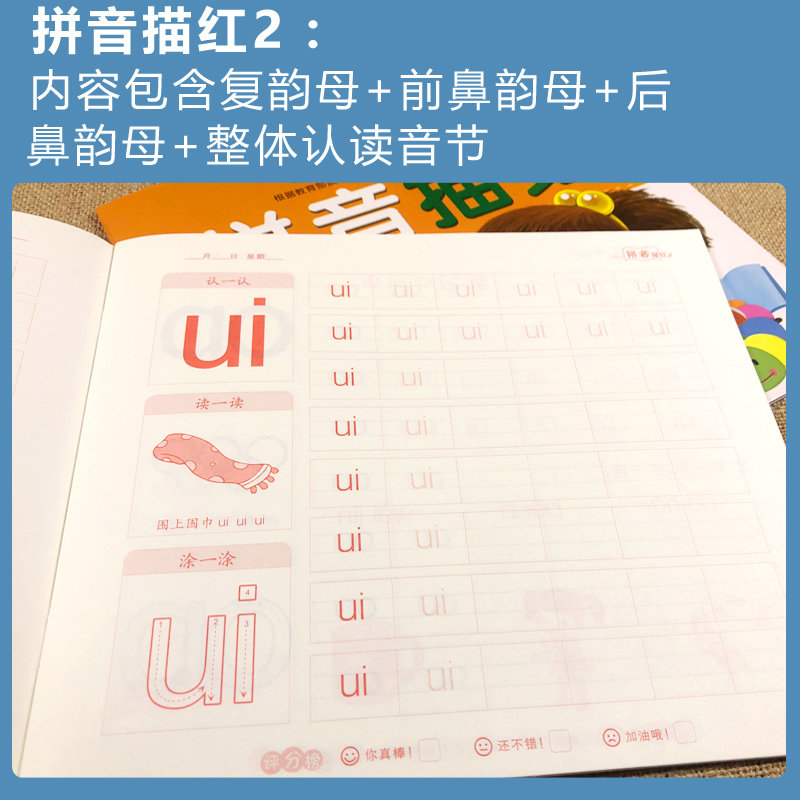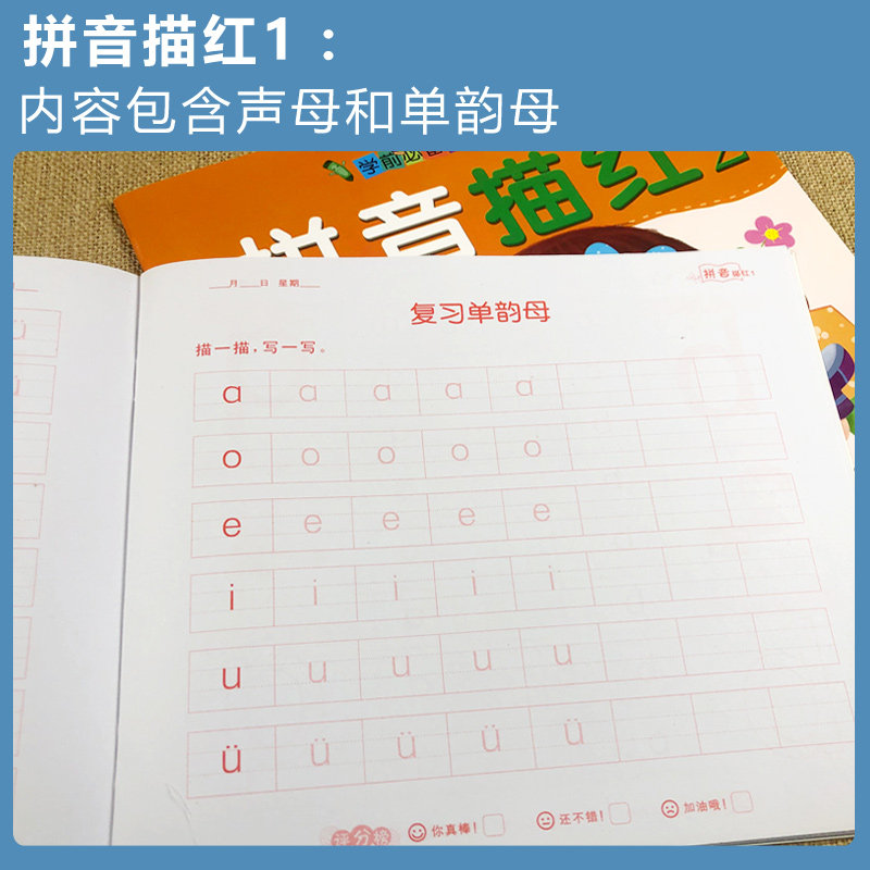 6岁书写规范幼儿园教材单韵母声母整体认读字母书写字帖 阳光幼教学前快乐描红拼音描红1字母拼音字母铅笔描红本幼小衔接3 正版