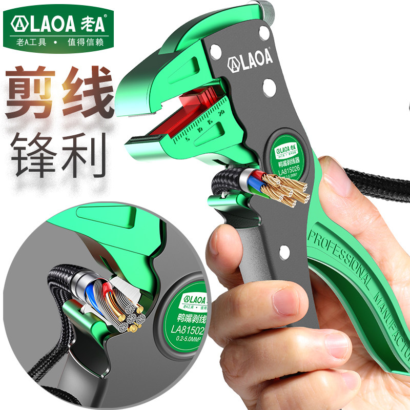 老A工具 台湾原产鸭嘴剥线钳多功能剥线钳电工剥皮钳拔线钳剥线器