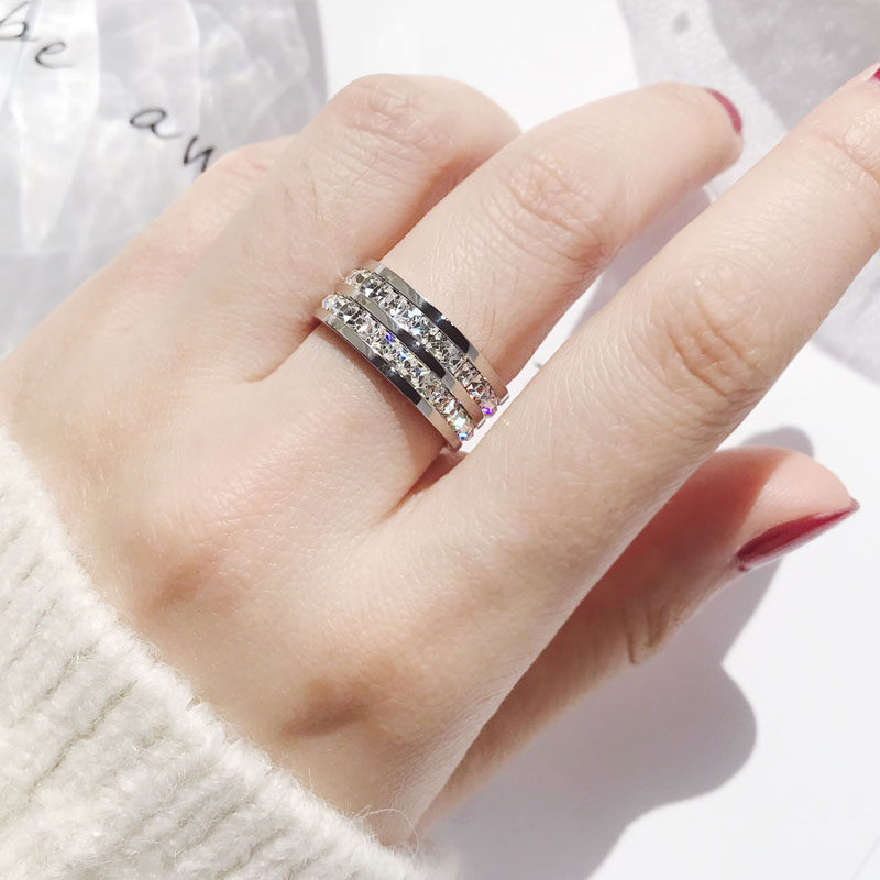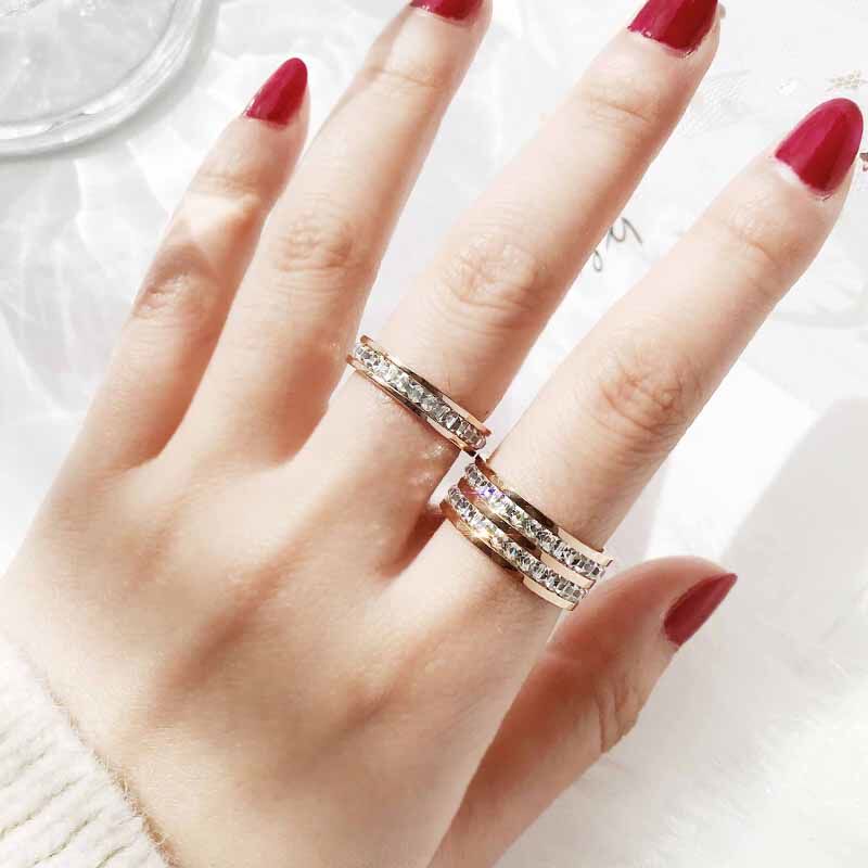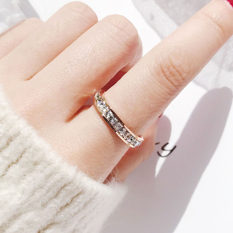 不掉色双排满天星彩金方钻银色戒指环女玫瑰金对戒情人节抖音同款