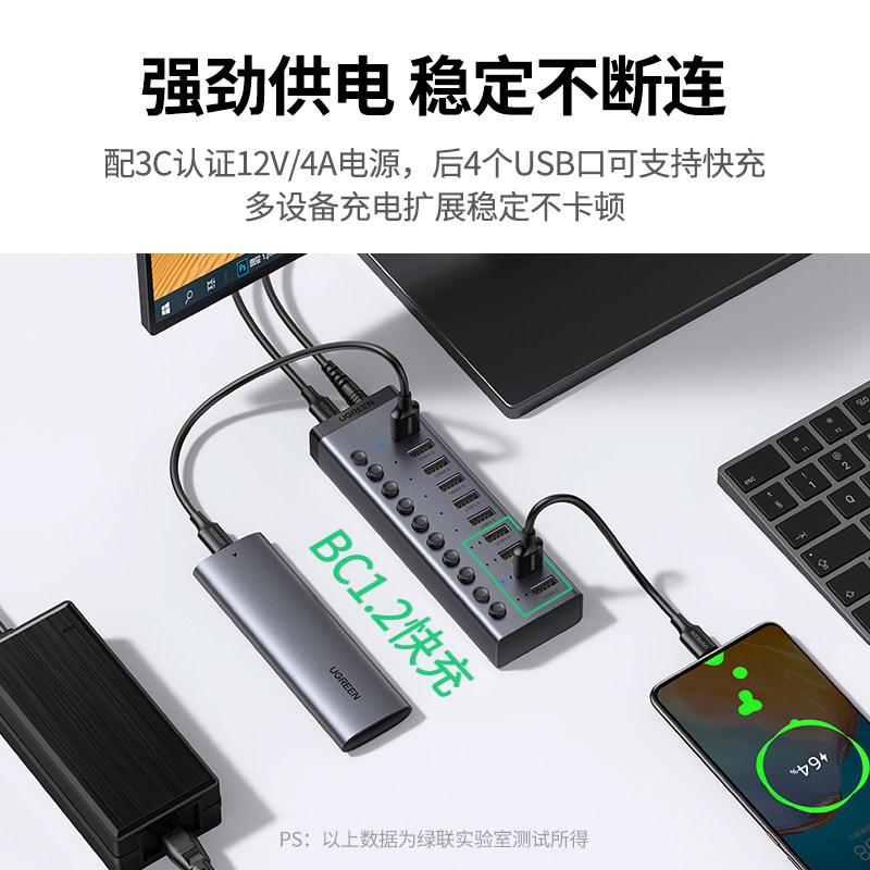 绿联usb扩展器多口hub分集线器带电源7 10口笔记本电脑转换插头外接3.0拓展多功多接口U盘转接桌面充电