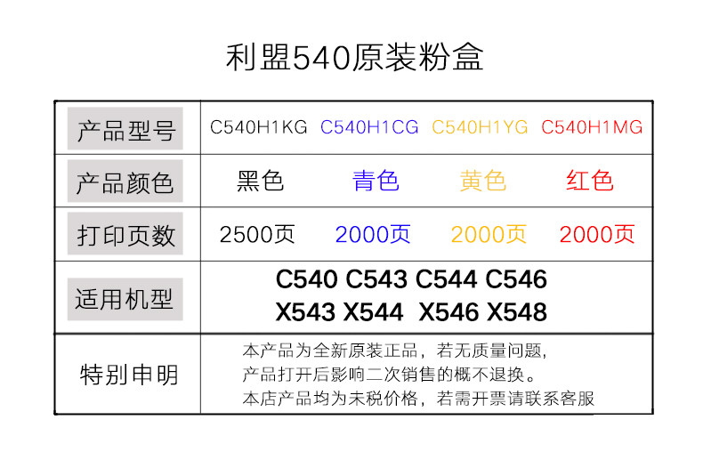 黑红黄 C540n C543d 原装 544dn 粉盒 X543 X544 利盟C540A1CG蓝色