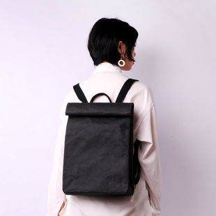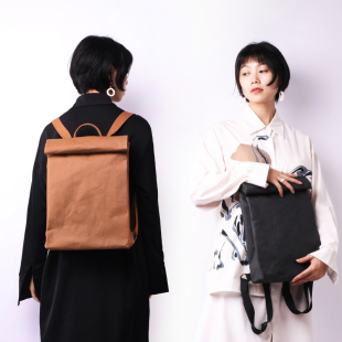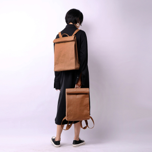 原创设计简约复古水洗牛皮纸14寸双肩包超轻防水中性苹果电脑背包