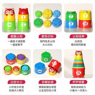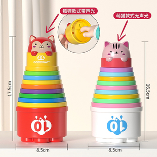 谷雨彩虹塔叠叠杯婴幼儿6个月12宝宝玩具1 3岁儿童圣诞礼物套套圈