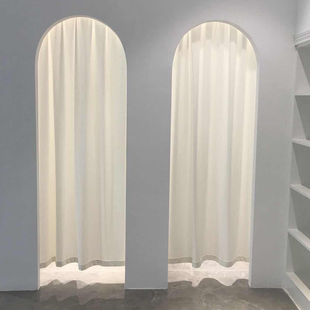 蕾丝门帘白纱卧室透光不透人纱帘免钉遮光隔断提花纱法式 氛围帘