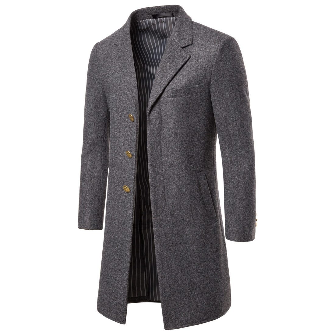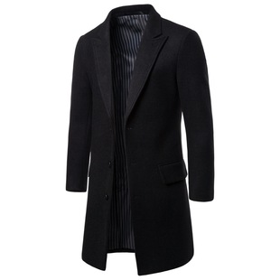 呢子西装 加厚宽松过膝风衣男韩版 外套 中长款 毛呢大衣男灰色秋冬季