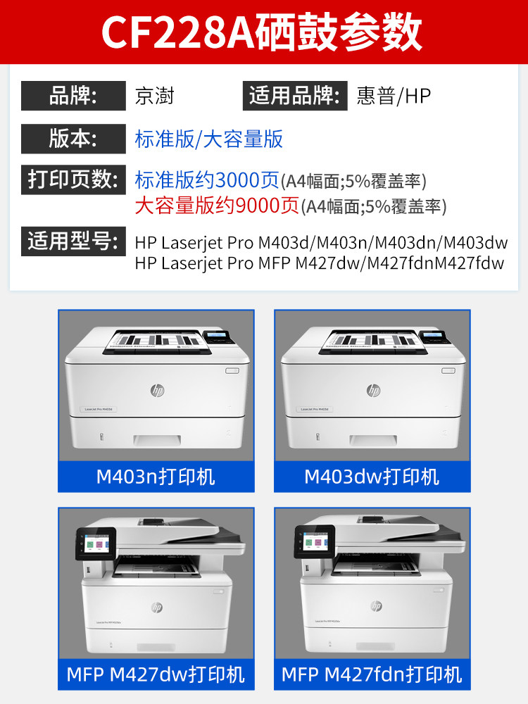 m403d硒鼓hp28a M403d M403n 京澍适用惠普LaserJet M403dn晒鼓打印机墨盒CF228a碳粉 MFP M403dw 可加粉 Pro